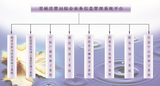 餐饮服务食品安全数字监管平台、高龄津贴发放信息管理系统新建商品房预售资金监管系统、保障性住房信息管理系统、房屋租赁网上合同备案系统、产权产籍管理系统、个人住房信息管理系统、房屋维修基金管理系统、新建商品房网上合同备案系统、房屋产权登记管理系统、房屋测绘成果及GIS信息系统、售楼管理系统、物业管理系统、房地产工程项目管理系统、房地产成本管理系统、代建工程管理系统